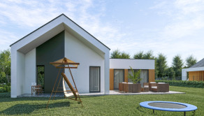 Rodinný dom je navrhnutý v modernom, nadčasovom architektonickom štýle s dôrazom na jednoduchosť, funkčnosť a prírodné materiály. Projekt je možné upraviť podľa požiadaviek klienta a zároveň financovať prostredníctvom hypotekárneho úveru alebo alebo prostredníctvom Štátneho fondu rozvoja bývania (ŠFRB), v závislosti od splnenia podmienok.